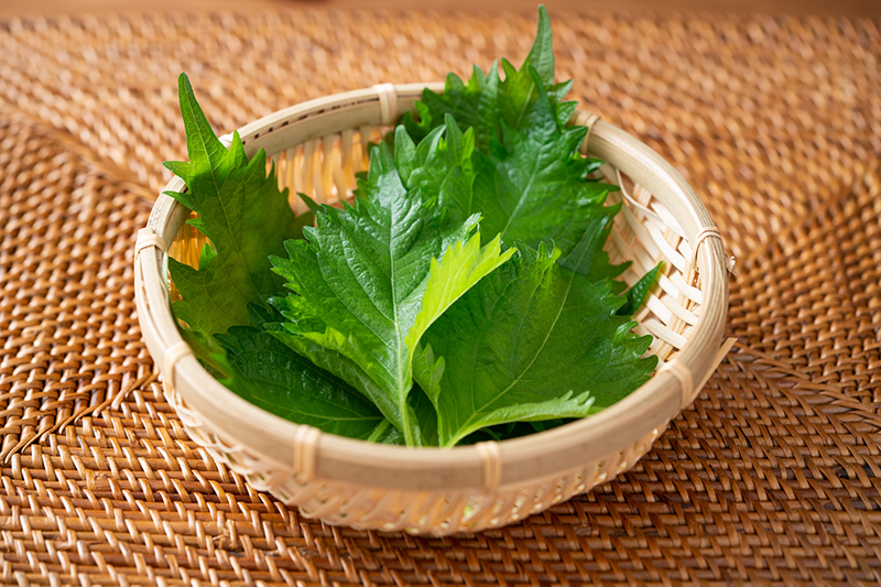 大葉は食材にさわやかなアクセントを加える薬味として、その他にもお刺身のつまや彩りとして欠かせない野菜です。当社で仕入れている大葉は、パリッと新鮮ですので噛んだ時の食感が違います。